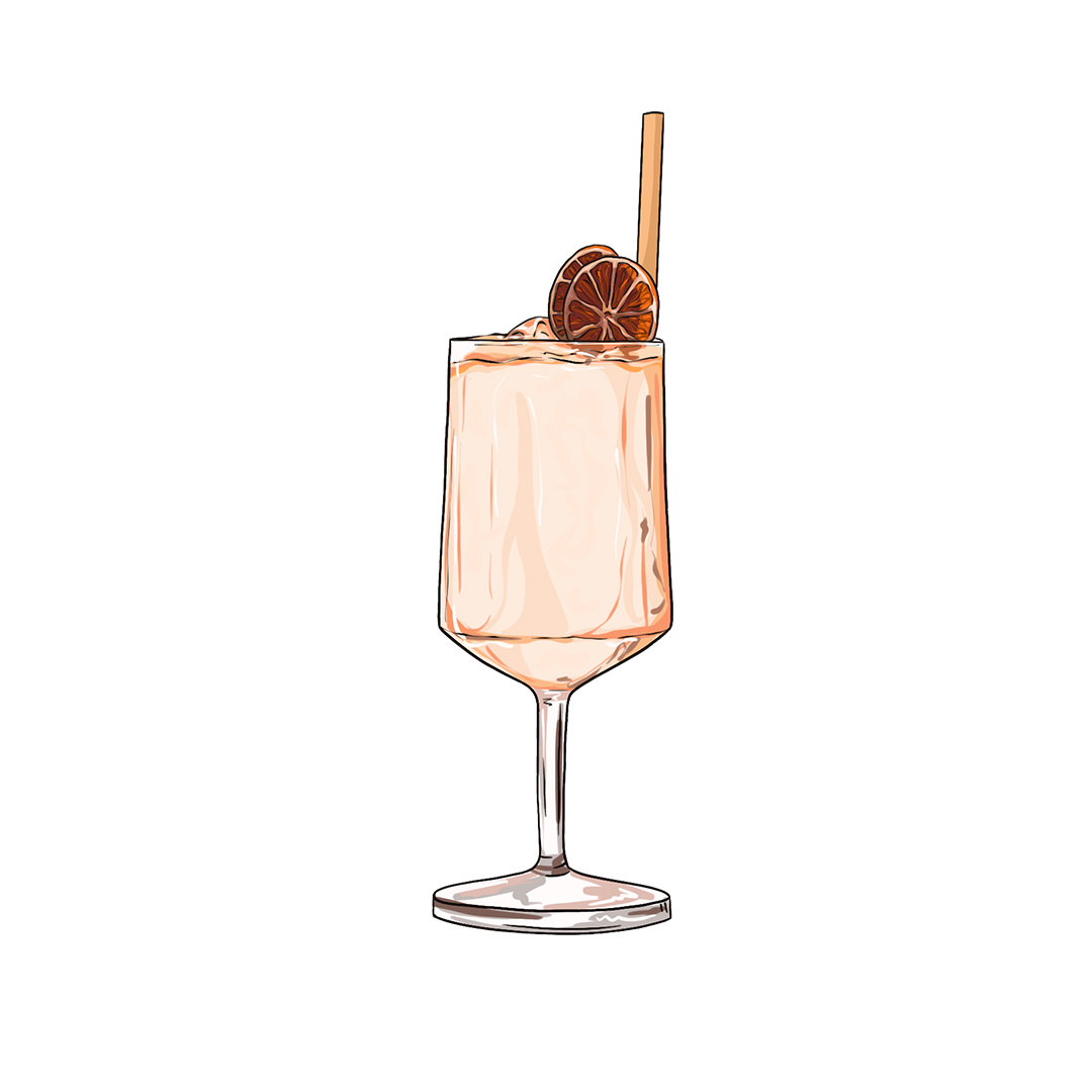 Rhum ambré infusé au épices, Cointreau, Jus d'orange, Thé glacé maison, Sirop pomme caramélisé maison.